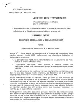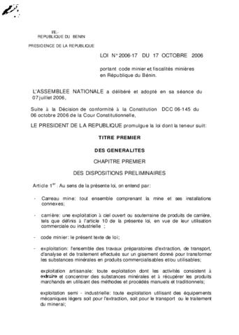 LOI N°2006-17 DU 17 OCTOBRE 2006