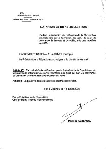 LOI N°2005-23 DU 18 JUILLET 2005
