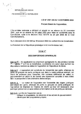 LOI N°2001-36 DU 14 OCTOBRE 2002