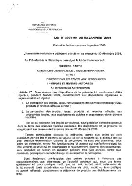 Loi portant loi de finances pour la gestion 2009.