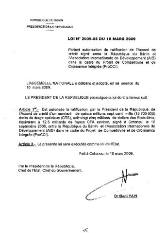 LOI N°2009-05 du 16 Mars 2009