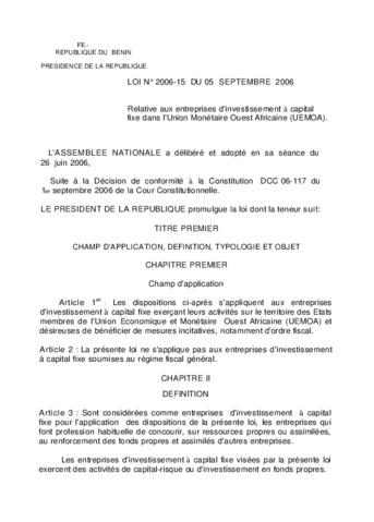 LOI N°2006-15 du 05 Septembre 2006
