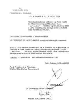 LOI N°2006-09 A du 02 Août 2006