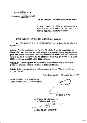 LOIN°2008-03 DU 09 SEPTEMBRE 2008