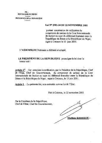 portant autorisation de ratification du compromis de saisine de la Cour Internationale de Justice au sujet du différend frontalier entre la Républiqu...
