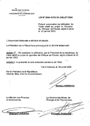 portant autorisation de ratification du Traité relatif au projet du Gazoduc de l'Afrique de l'Ouest, signé à Dakar le 31 janvier 2003.