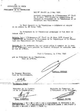 LOI N°90-001 du 2 Mai 1990