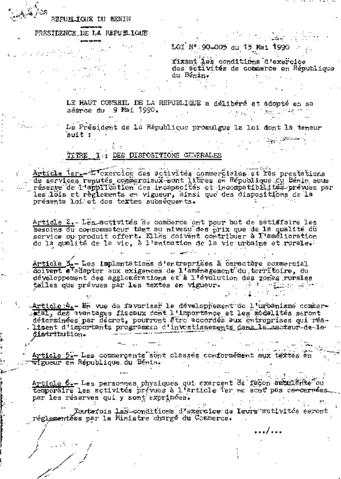 fixant les conditions d'exercice des activités de commerce en République du Bénin