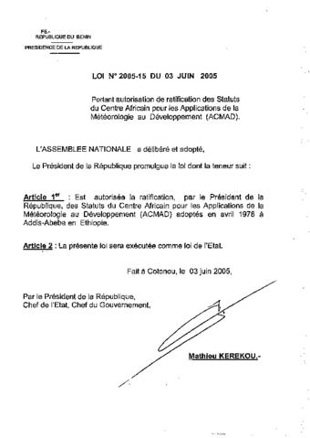 portant autorisation de ratification des Statuts du Centre Africain pour les Applications de la Météorologue au Développement (ACMAD)