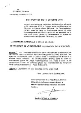 portant autorisation de ratification de l’Accord de prêt signé le 28 décembre 2005 à Cotonou entre la République du Bénin et la Banque Ouest Africaine...
