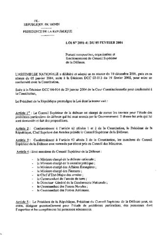 LOI N° 2001-41 DU 05 FEVRIER 2004