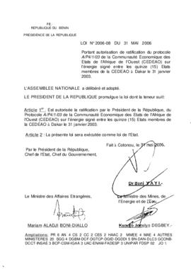 Portant autorisation de ratification du protocole A/P4/1/03 de la Communauté Economique des Etats de l'Afrique de l'Ouest (CEDEAO) sur l'énergie signé...