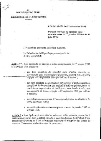 portant amnistie de certains faits commis entre le 1er janvier 1990 et le 30 juin 1996
