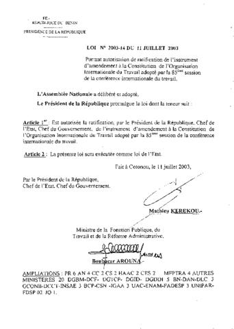 portant autorisation de ratification de l’instrument d’amendement de la Constitution de l’Organisation Internationale du Travail adopté par la 85ème...