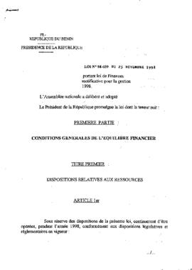 portant loi des finances modification pour la gestion 1998