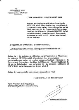 LOI N°2004-25 DU 22 DECEMBRE 2004