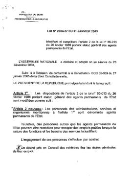 LOI N°2004-27 DU 31 JANVIER 2005