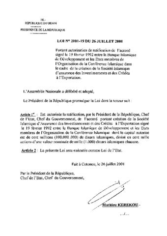 LOI N°2001-19 du 26 Juillet 2001