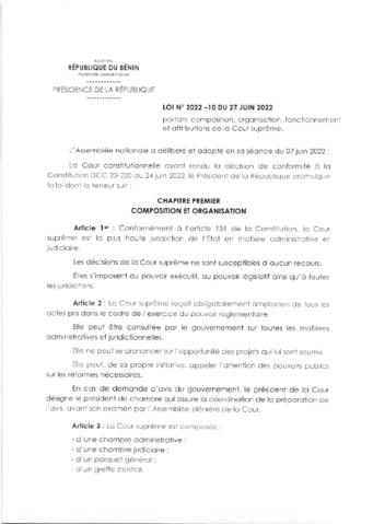LOI N°2022-10 du 27 Juin 2022