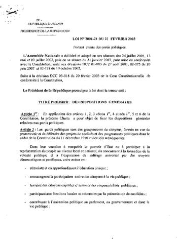 LOI N°2001-21 DU 21 FEVRIER 2003