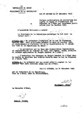 LOI N°93-023 DU 31 DECEMBRE 1993