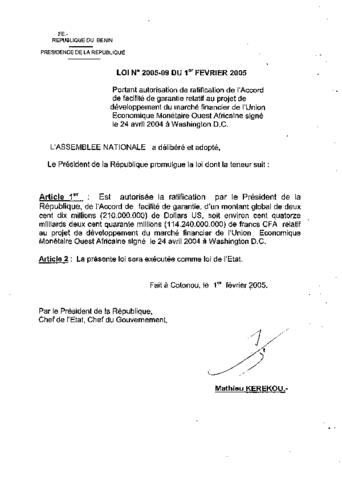 LOI N°2005-09 DU 1er FEVRIER 2005