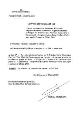 portant autorisation de ratification de l'accord de partenariat entre les membres du groupe des Etats d'Afrique, des Caraïbes et du Pacifique d'une pa...