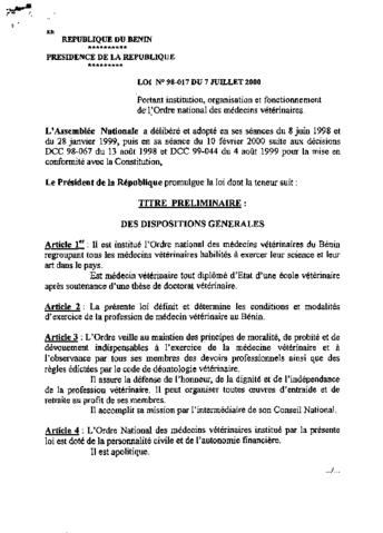 LOI N°98-017 du 7 Juillet 2000