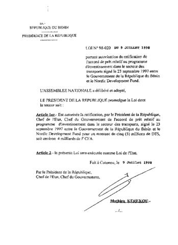 LOI N°98-020 DU 9 JUILLET 1998