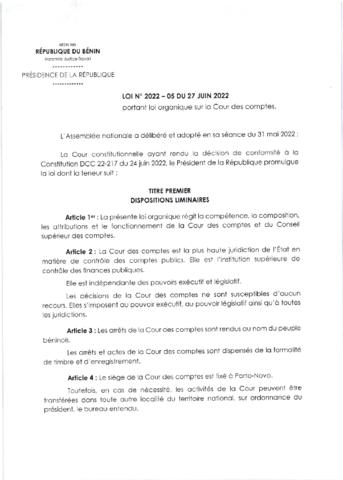 LOI N°2022-05 du 27 Juin 2022