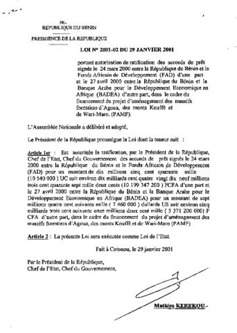 Loi N° 2001-08