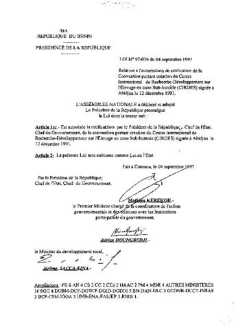 LOI N°97-039 DU 04 SEPTEMBRE 1997
