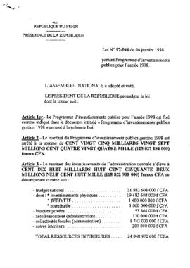 portant programme d'investissement publics pour l'année 1998