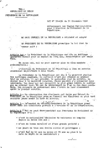 LOI N°90-036 DU 31 DECEMBRE 1990
