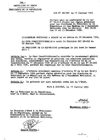LOI N°94-030 DU 17 JANVIER 1995