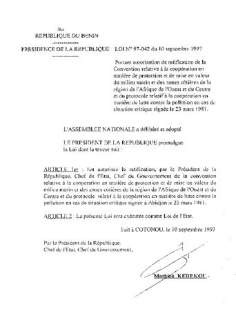 LOI N°97-042 DU 10 SEPTEMBRE 1997