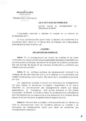 portant t autorisation d'enregistrement à titre dérogatoire à l'état civil en République du Bénin.