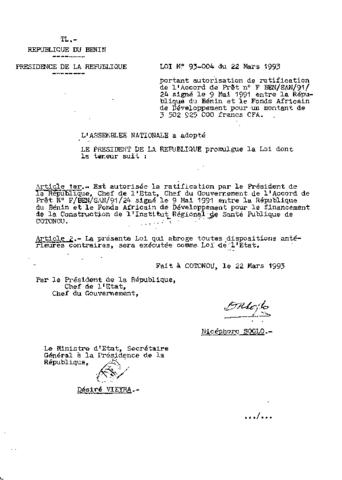 LOI N°93-004 DU 22 MARS 1993