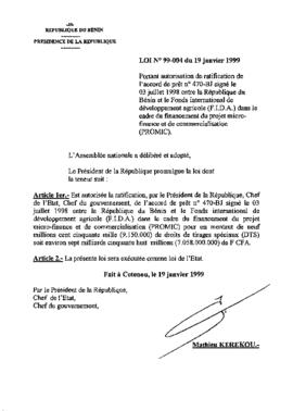 portant autorisation de ratification de l’accord de prêt n° 470-BJ signé le 03 juillet 1998 entre la République du Bénin et le Fonds International de...
