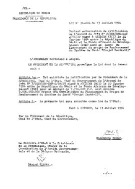 autorisant la ratification de l'accord de prêt signé le 13 septembre 1996 entre la République du Bénin et le Fonds International de développement Agri...