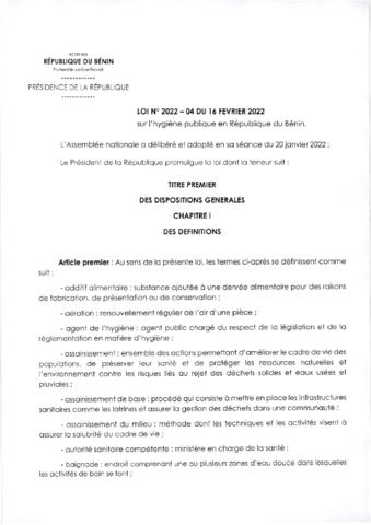 sur l'hygiène publique en République du Bénin