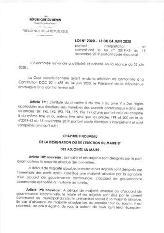 LOI N°2020-13 du 04 Juin 2020
