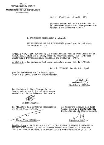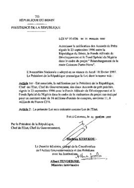 portant autorisation de ratification de l'Accord de prêt signé le 16 janvier 2007 à Cotonou entre la République du Bénin et la Banque Ouest Africaine...