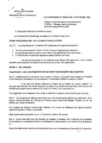 LOI UNIFORME N°2000-12 du 15 Février 2001
