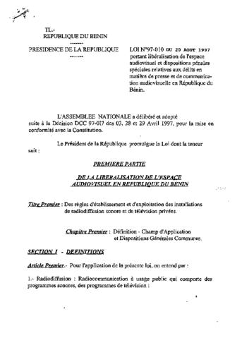 LOI N°97-010 du 29 Août 1997