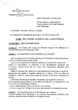 portant création, organisation et fonctionnement du Conseil National de la Statistique (CNS)