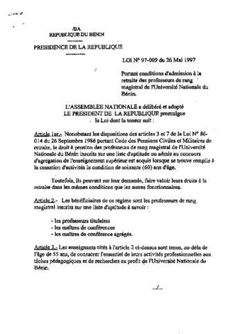 portant conditions d’admission à la retraite des professeurs de rang magistral de l’Université nationale du Bénin