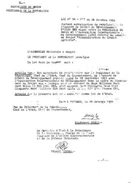 portant autorisation de ratification de l’Accord de crédit de développement n° 2529 BEN signé entre la République du Bénin et l’AID relatif au 2ème pr...