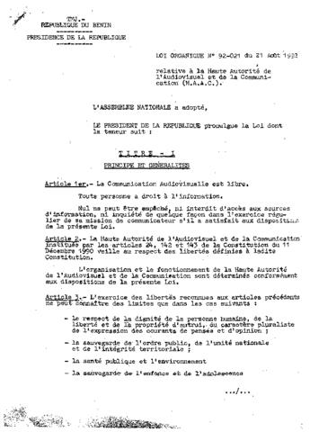 portant règles générales pour les élections du Président de la République et des membres de l'Assemblée Nationale.
