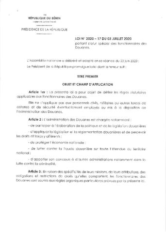 LOI N°2020-17 du 03 Juillet 2020